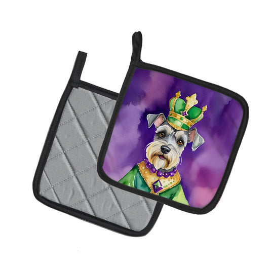 Schnauzer King of Mardi Gras Pair of Pot Holders
