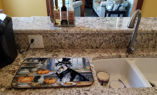 Schnauzer Fall Kitchen Pumpkins Dish Drying Mat