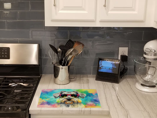 Schnauzer Hippie Dawg Glass Cutting Board