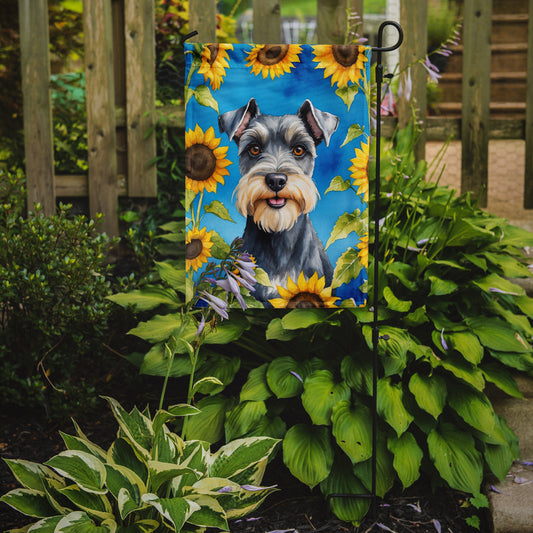 Schnauzer in Sunflowers Garden Flag