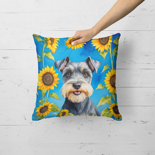 Schnauzer in Sunflowers Throw Pillow