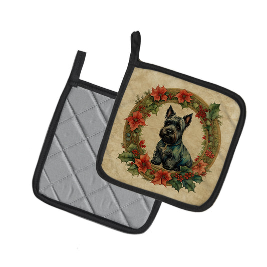 Scottish Terrier Christmas Flowers Pair of Pot Holders