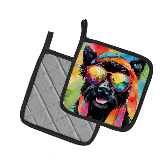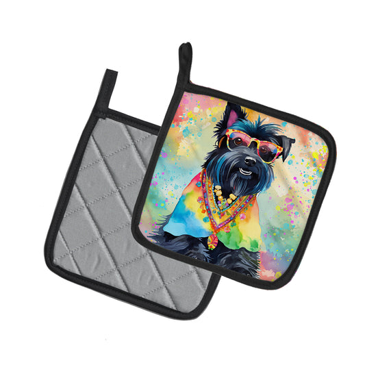 Scottish Terrier Hippie Dawg Pair of Pot Holders