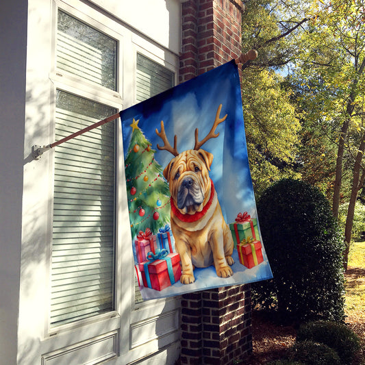 Shar Pei Christmas Reindeer House Flag