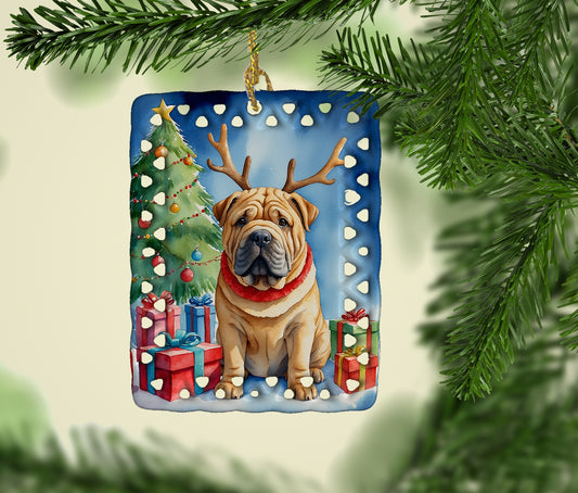 Shar Pei Christmas Reindeer Porcelain Ornament