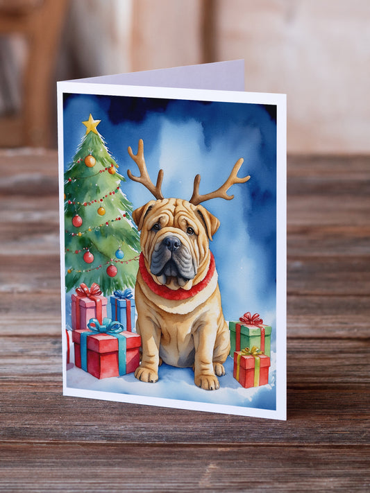 Shar Pei Christmas Reindeer Greeting Cards Pack of 8