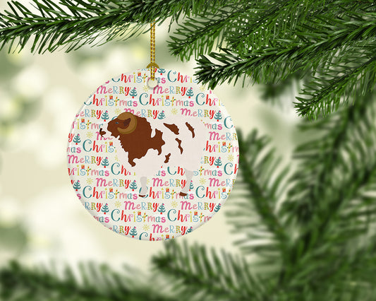Horned Dorset Sheep Christmas Ceramic Ornament