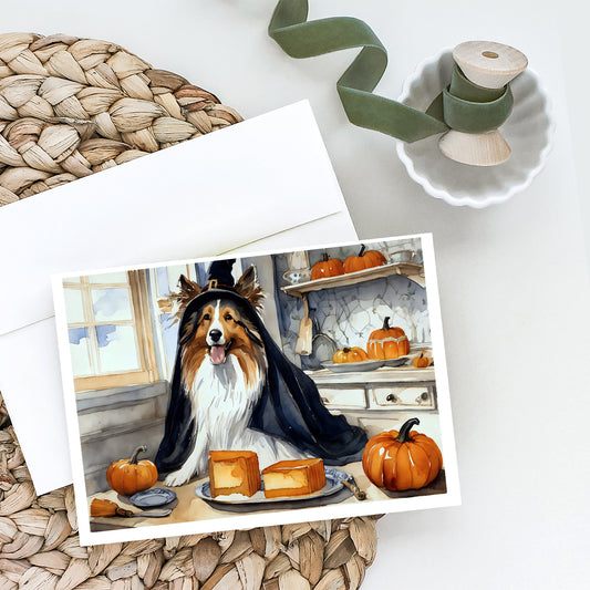 Sheltie Fall Kitchen Pumpkins Greeting Cards and Envelopes Pack of 8