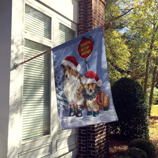 Sheltie Christmas Santa Stop Flag Canvas House Size PPP3188CHF
