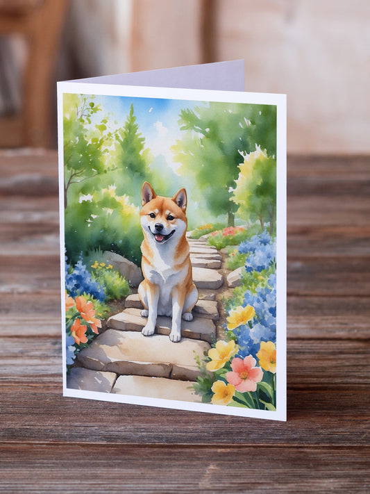 Shiba Inu Spring Path Greeting Cards Pack of 8