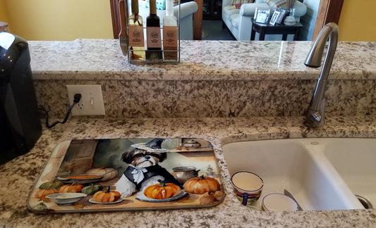 Shih Tzu Fall Kitchen Pumpkins Dish Drying Mat