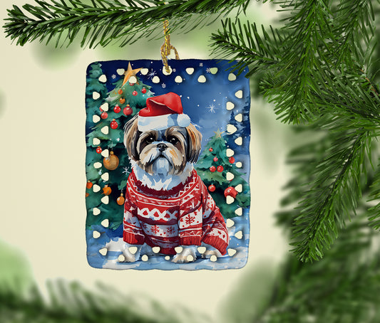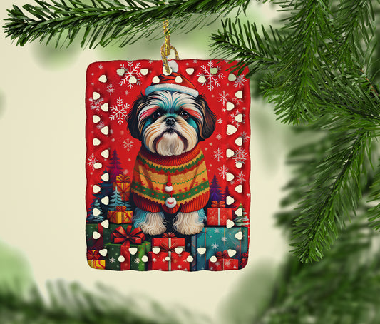 Shih Tzu Holiday Christmas Porcelain Ornament