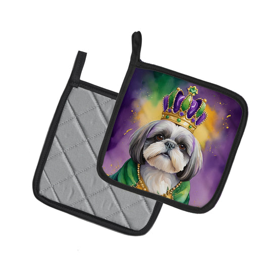 Shih Tzu King of Mardi Gras Pair of Pot Holders
