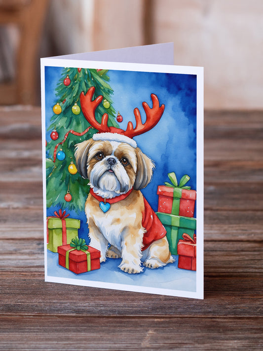 Shih Tzu Christmas Reindeer Greeting Cards Pack of 8