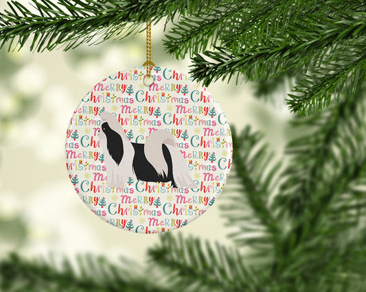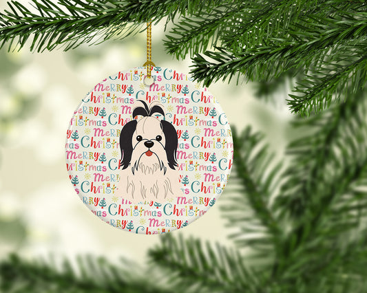 Merry Christmas Shih Tzu Black White Ceramic Ornament
