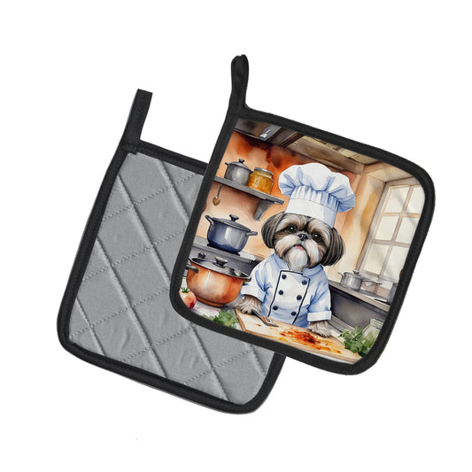 Shih Tzu The Chef Pair of Pot Holders