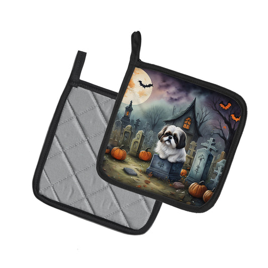 Shih Tzu Spooky Halloween Pair of Pot Holders