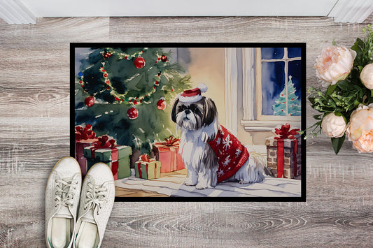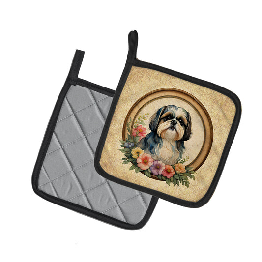 Shih Tzu Christmas Flowers Pair of Pot Holders