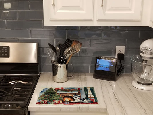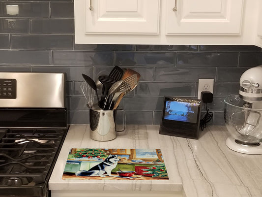 Siberian Husky Cozy Christmas Glass Cutting Board