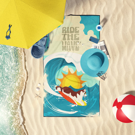 Surfer Dog Red White Siberian Husky Premium Beach Towel