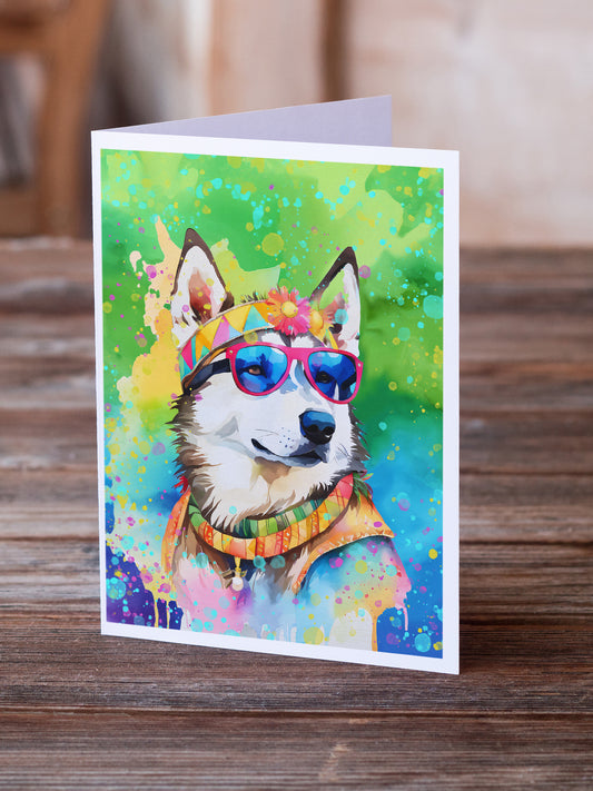 Siberian Husky Hippie Dawg Greeting Cards Pack of 8