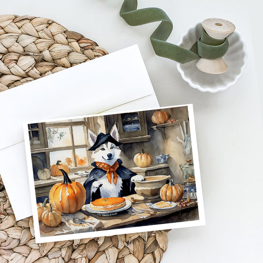 Siberian Husky Fall Kitchen Pumpkins Greeting Cards and Envelopes Pack of 8