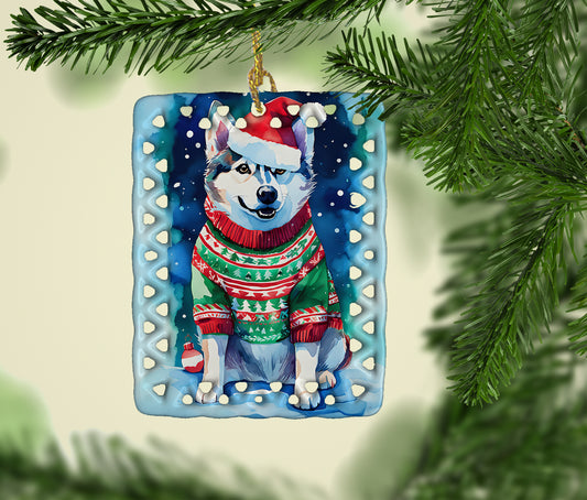 Siberian Husky Holiday Christmas Porcelain Ornament