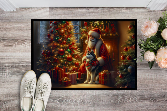 Siberian Husky and Santa Claus Doormat