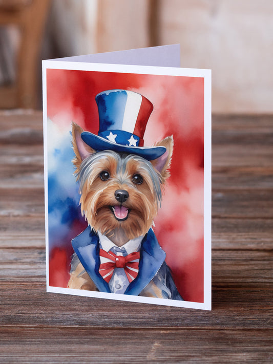 Silky Terrier Patriotic American Greeting Cards Pack of 8