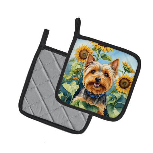 Silky Terrier in Sunflowers Pair of Pot Holders
