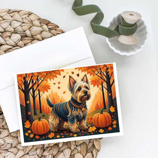 Silky Terrier Fall Greeting Cards and Envelopes Pack of 8