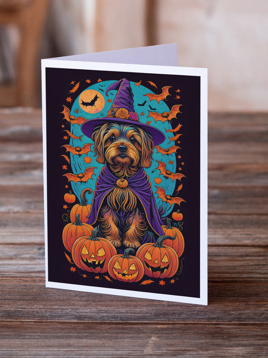Silky Terrier Witchy Halloween Greeting Cards and Envelopes Pack of 8