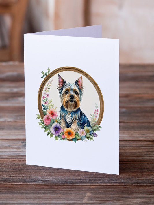 Silky Terrier and Flowers Greeting Cards and Envelopes Pack of 8
