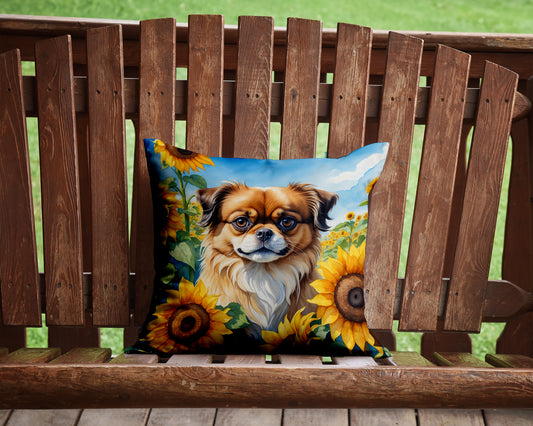 Tibetan Spaniel in Sunflowers Throw Pillow