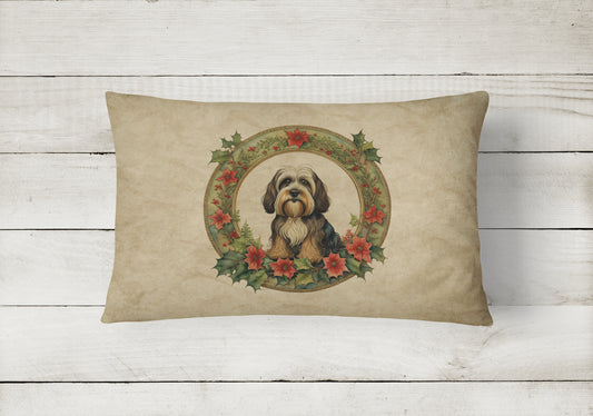 Tibetan Terrier Christmas Flowers Throw Pillow