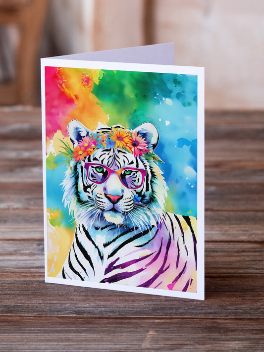 Hippie Animal White Tiger Greeting Cards Pack of 8