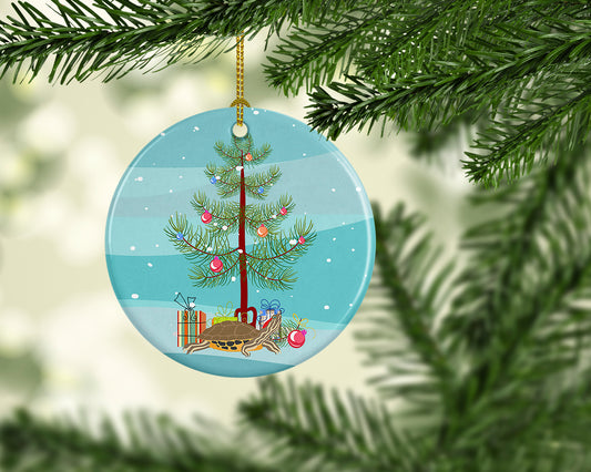 Turtle Merry Christmas Ceramic Ornament