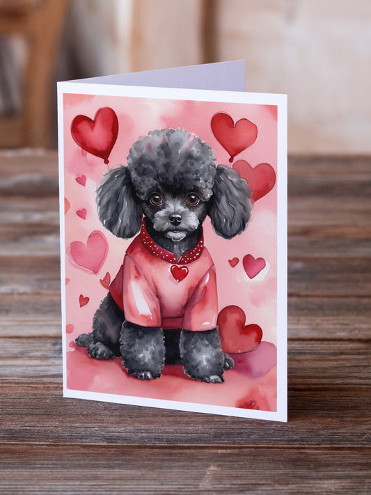 Black Poodle My Valentine Greeting Cards Pack of 8