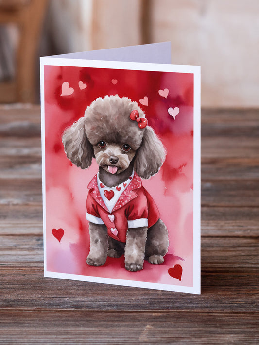 Chocolate Poodle My Valentine Greeting Cards Pack of 8