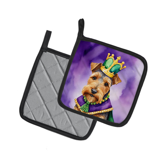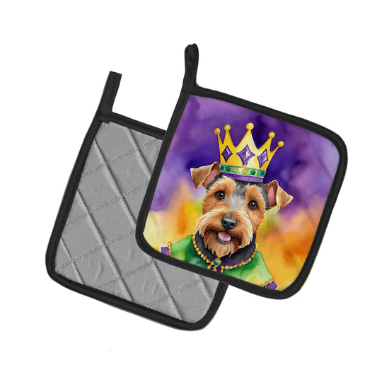 Welsh Terrier King of Mardi Gras Pair of Pot Holders
