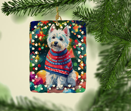 West Highland White Terrier Smiling Christmas Wreath Ceramic Ornament
