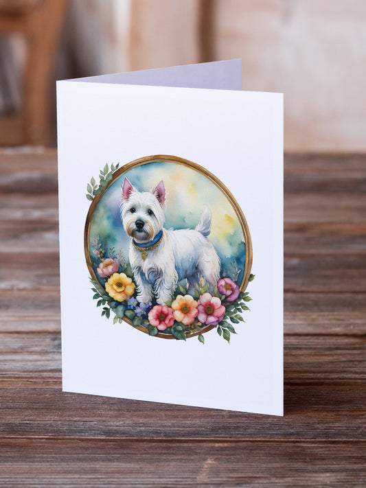 Westie and Flowers Greeting Cards and Envelopes Pack of 8