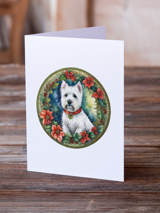 Westie Christmas Flowers Greeting Cards Pack of 8