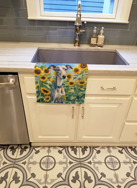 Whippet in Sunflowers Kitchen Towel