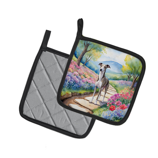 Whippet Spring Path Pair of Pot Holders