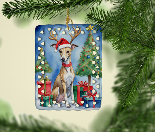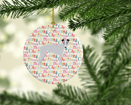 Merry Christmas Whippet Ceramic Ornament