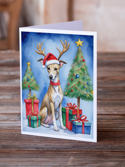 Whippet Christmas Reindeer Greeting Cards Pack of 8