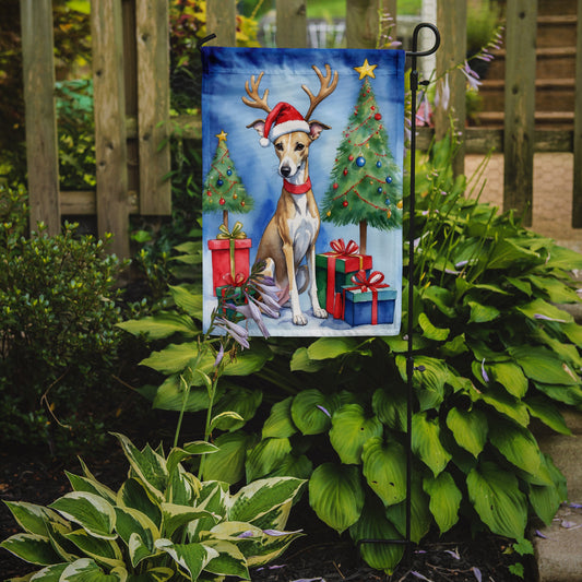 Whippet Christmas Reindeer Garden Flag