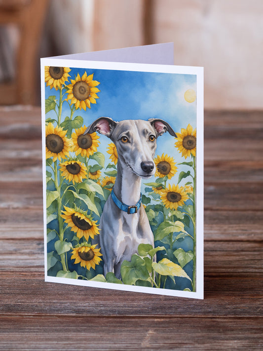 Whippet in Sunflowers Greeting Cards Pack of 8