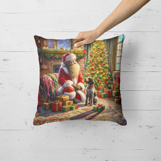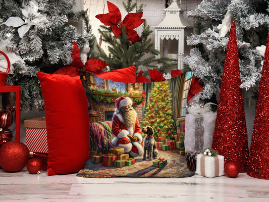 Wirehaired Pointing Griffon and Santa Claus Throw Pillow